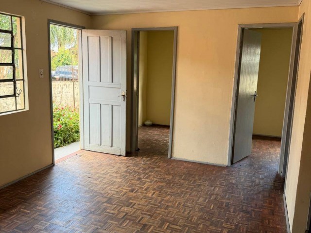 Casa em alvenaria contendo 1 sala de estar, 1 sala de jantar, cozinha, 1 suíte, 2 quartos, 1 banheiro, lavanderia, garagem, edícula aos fundos com churrasqueira, localizada Rua Alcides Vodonos, nº 164, bairro Bento Munhoz da Rocha, distrito São Cristóvão, União da Vitória/PR, próximo a Herbert.