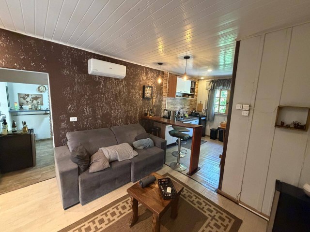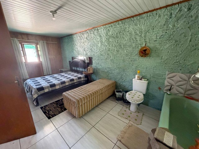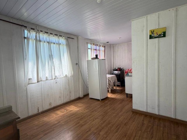 • Casa de madeira: 2 quartos, sala, cozinha, banheiro, varanda.