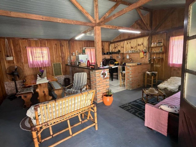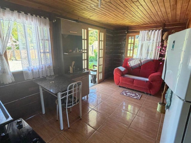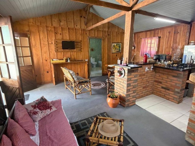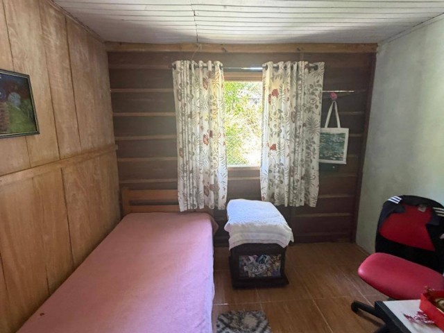 • Casa de madeira: 2 quartos, sala, cozinha, banheiro, varanda.