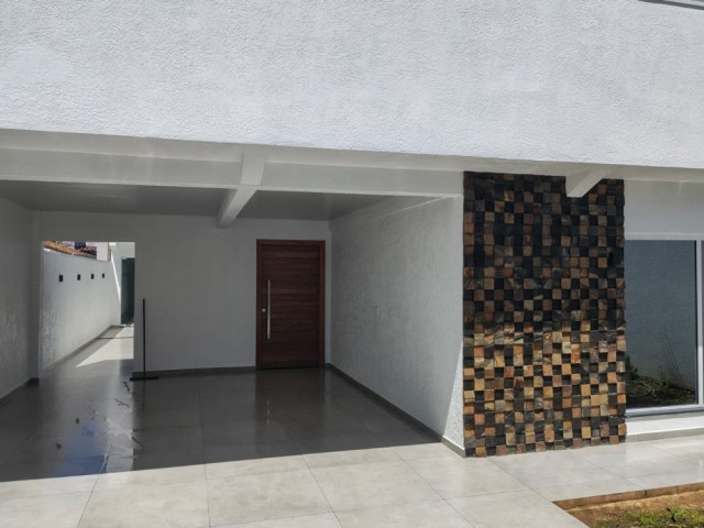 Casa em alvenaria alto padrão com cômodos amplos espaços: com piso em porcelanato, banheiros revestidos em porcelanato, acabamentos em mármore, forro laje, com ótima localização contendo: